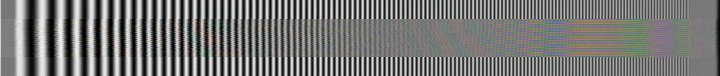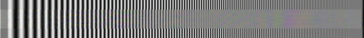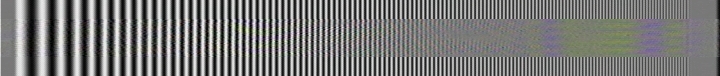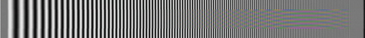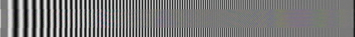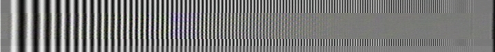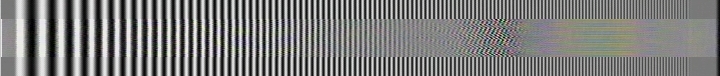 Ich habe ein Burstsignal, das von 0,5 Mhz (links) bis 5 Mhz (rechts) langsam ansteigt, einmal als S-Videosignal digitalisiert und danach als Video Signal digitalisiert. Das oberste Testbild zeigt das Videosignal im S-Videosignal-"Rahmen". Man sieht deutlich das Dunklerwerden der höheren Frequenzen und die Artefakte, die durch die Signalmischung Helligkeit und Farbe entstehen. Darunter sind auf die gleiche Art die Wiedergabebilder verschiedener Rekorder mit eigener Aufnahme dargestellt. Das kurze Stück am Anfang des Testbildes bezeichne ich mal als Grauwert; dieser sollte bei der Wiedergabe nicht sehr vom Original abweichen.