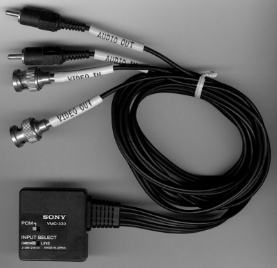 Verbindungskabel PCM-F1 SL-F1. Es ist ähnlich dem VMC-330 allerdings ohne Audioanschluß. Es gehört zum Lieferumfang des PCM-F1