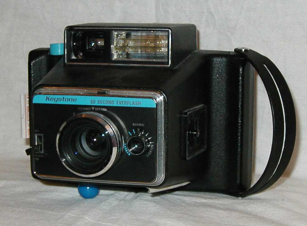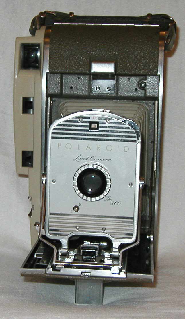 Nicht besonders hübsch, auch nicht wirklich selten und keine Polaroid. Eingebautes Elektronenblitzgerät und mechanische Entwicklungszeituhr. Kann rechteckige und quadratische Filme aufnehmen. Der Sucher paßt sich automatisch an. Recht einfache Konstruktion und doch praktisch.
