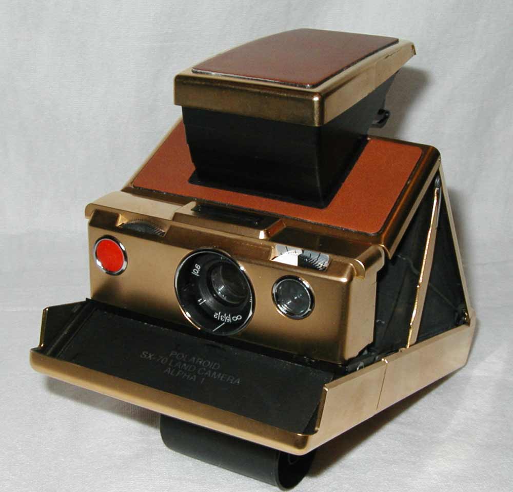 SX-70 SONAR von 1979: "Limited Edition" steht auf dem hinteren Aufkleber unterhalb des Suchers. Ob es sich hier auch um "echt vergoldet" handelt, weiß ich leider nicht. Diese Kamera habe ich mal bei eBay ersteigert. Dummerweise ist beim Versand das linke hintere Schanier gebrochen. Es war eine knifflige Operation...